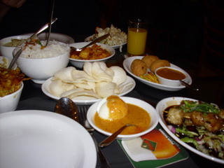 Twice we had an Indonesian rijsttafel, a Dutch-colonial rice feast with many dishes and most fiery.