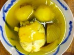 Here are the drained remains of the fish head and bones after they have yielded their flavour to the liquid stock.