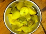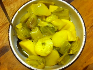 Here are the saffron-coloured vegetables, removed temporarily from the saucepan.