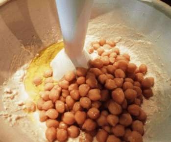 Start by soaking about 200g of the dried chickpeas in water overnight (or use boiling water and soak for about an hour until plumped up). Drain then add to a pan with fresh water, and simmer for about 45 minutes. Once cooked (soft enough to munch but not mushy), drain the chickpeas and let them cool down a bit.