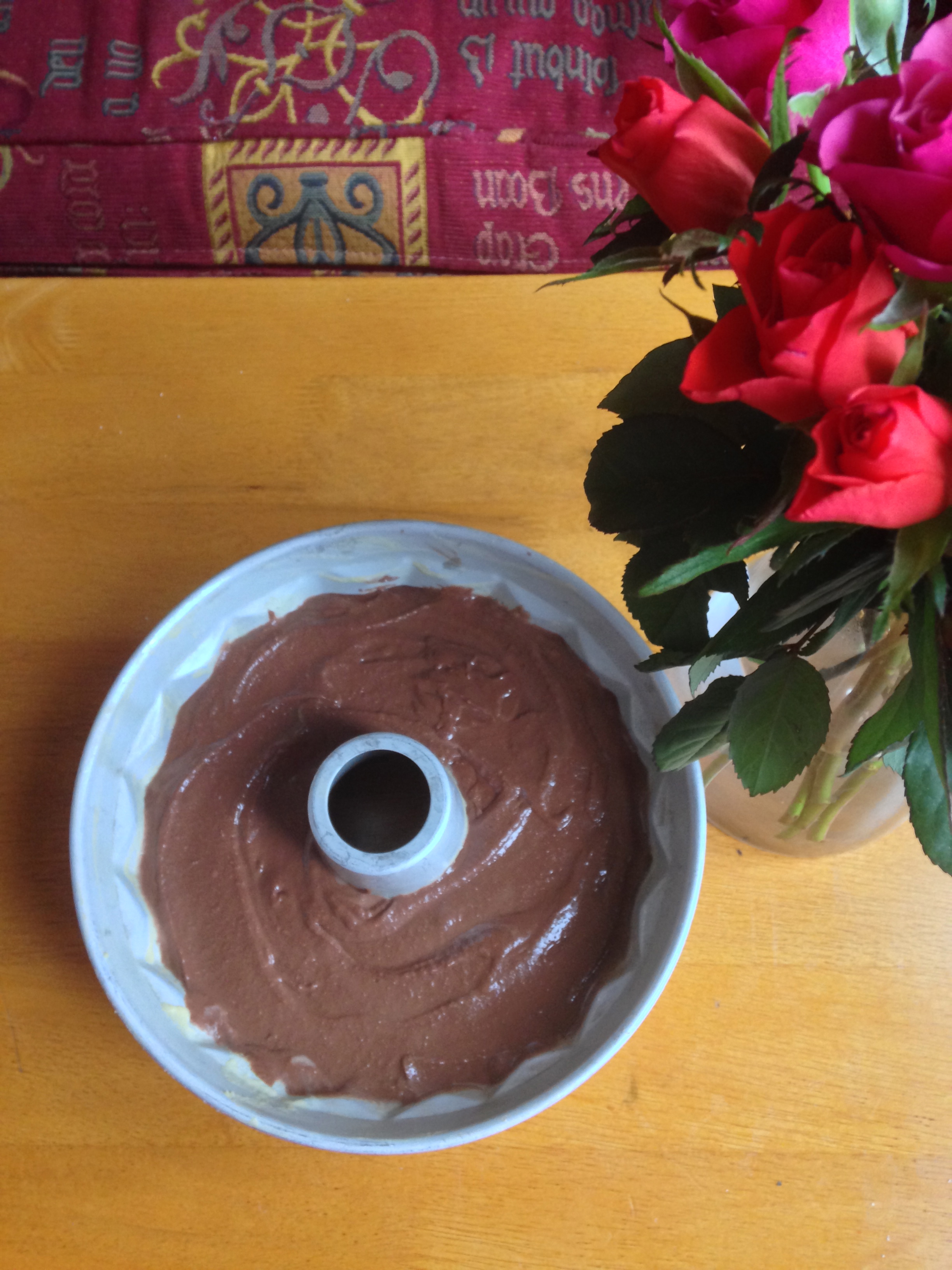 Cake mixture in fluted tin belonging to my grandma