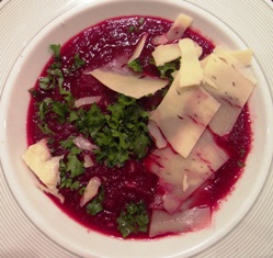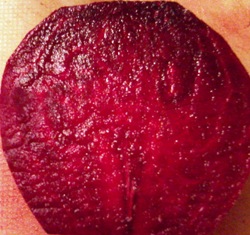 Cut up two large peeled/scrubbed organic beetroot and place in a large pan with two peeled onions, sliced. Cover with water and bring to the boil, then simmer with a lid for 30 minutes.