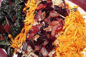 Plus 3 cups of grated organic carrot and some cut-up raisins.