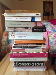 And I also made a Board for Books. (Above a pic of pile: books I am reading, want to read or have read but can’t bear to be parted from).