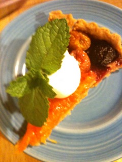 The pudding: seasonal cherries picked that day by Angie in Leona valley, a nearby microclimate defying the Californian desert. Plus apricots, a blob of creme fraiche, and the most elegantly thin wholemeal pastry (a feat as such pastry is usually cludgy).